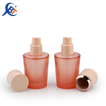 ขวดแก้วสีชมพูพร้อมฝาปั๊มสำหรับเครื่องสำอางครีมบำรุงผิวรอบดวงตารองพื้นทำจากแก้วหรูหรา30มล. ออกแบบได้ตามต้องการ